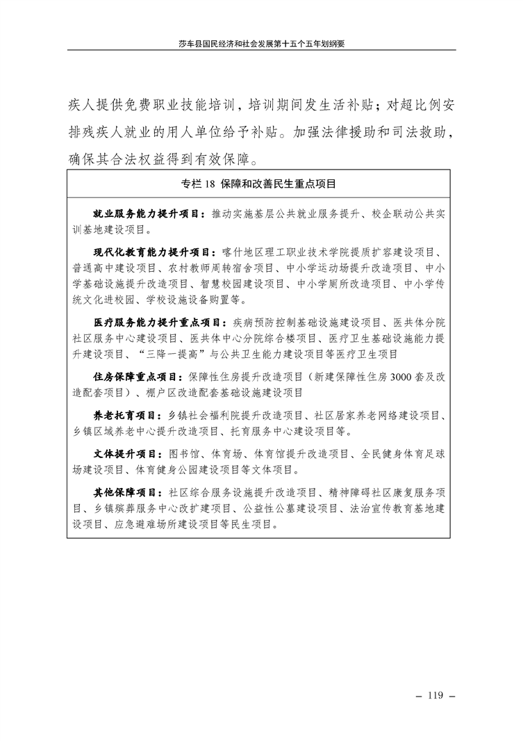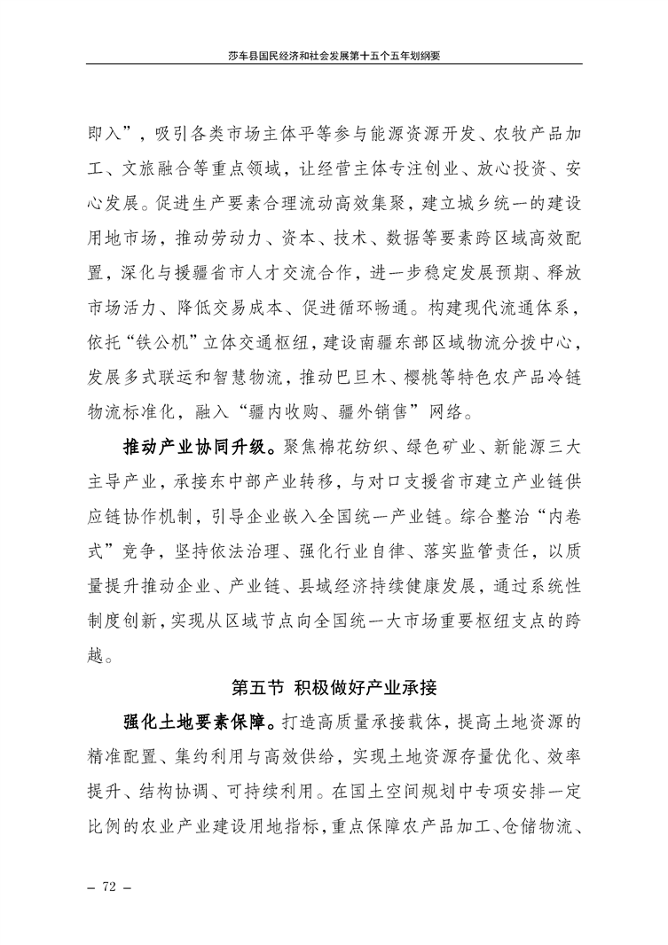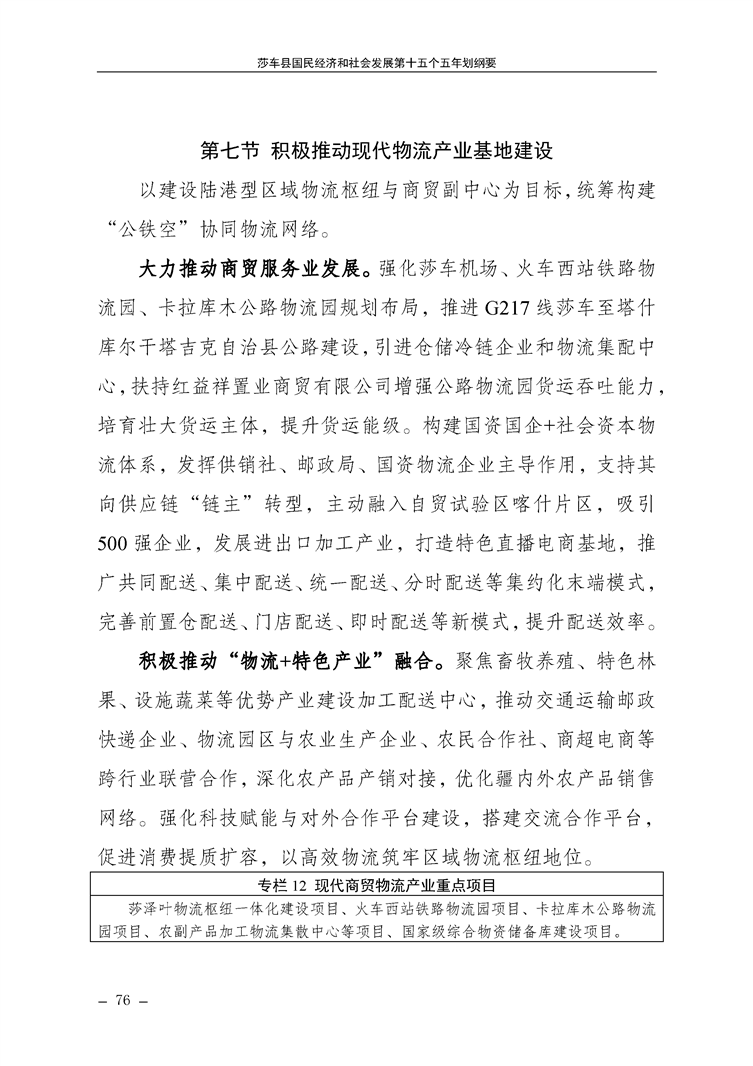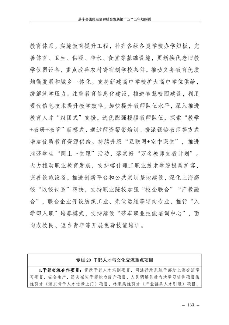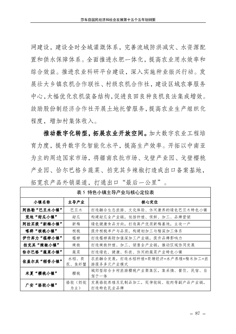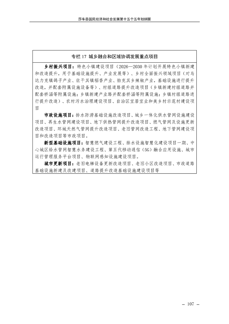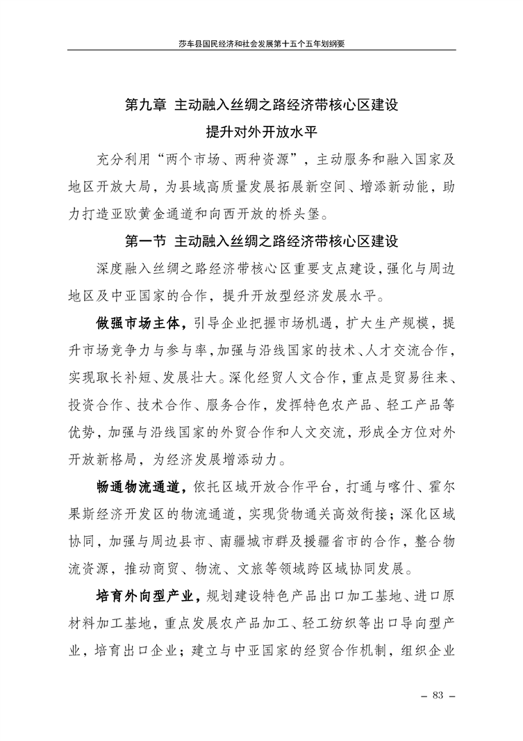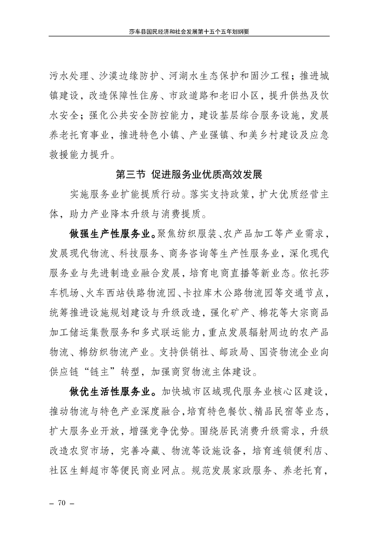 莎车县国民经济和社会发展第十五个五年规划纲要