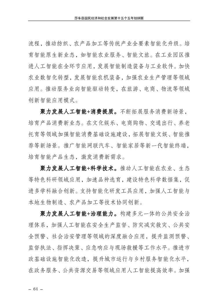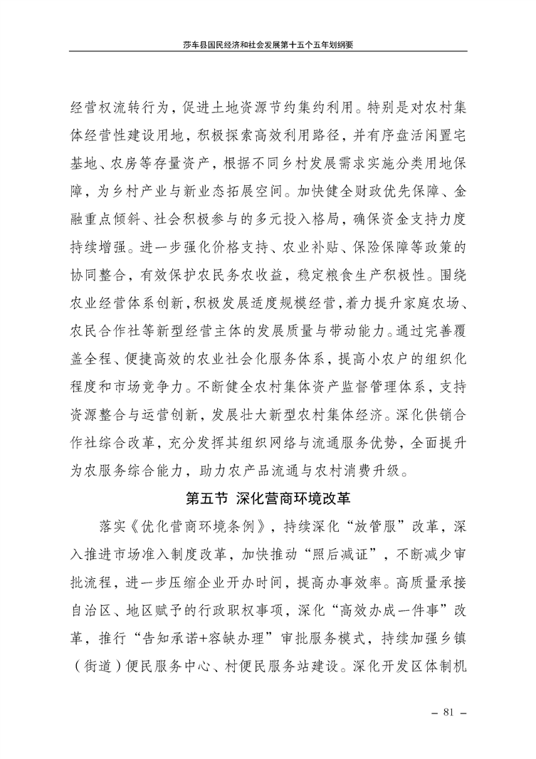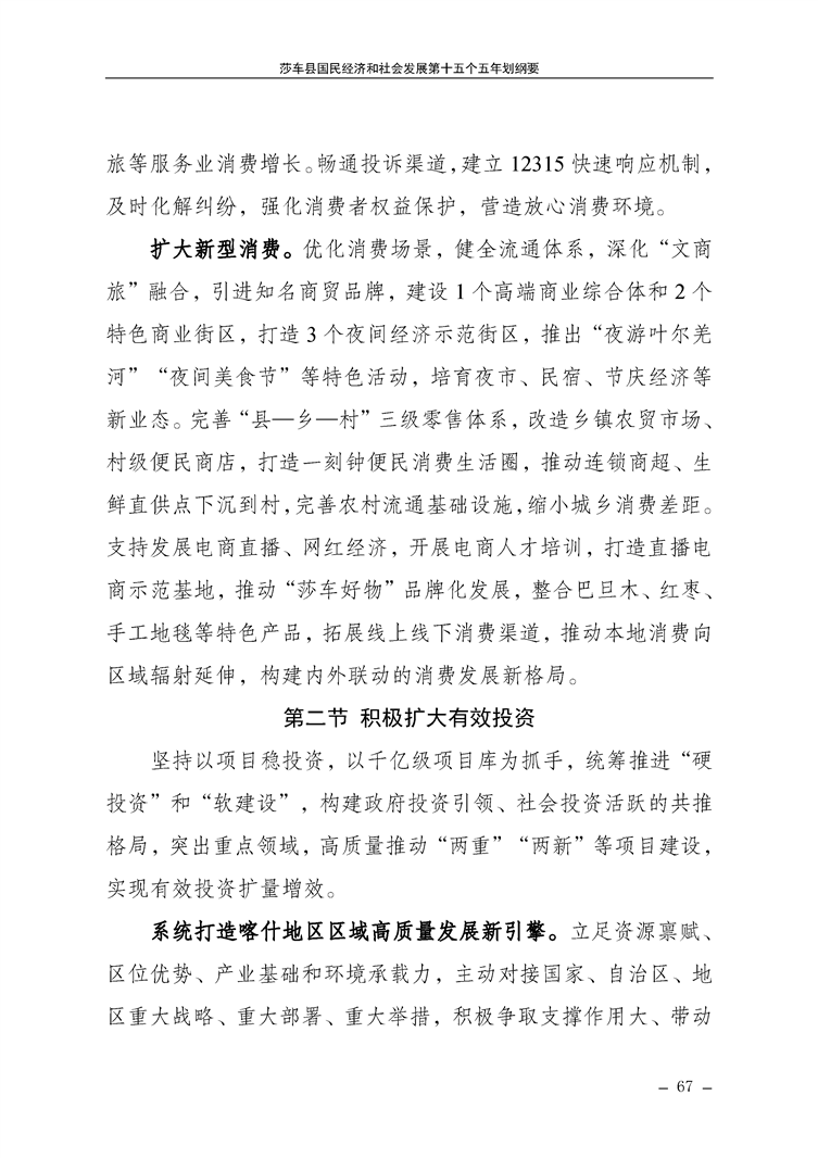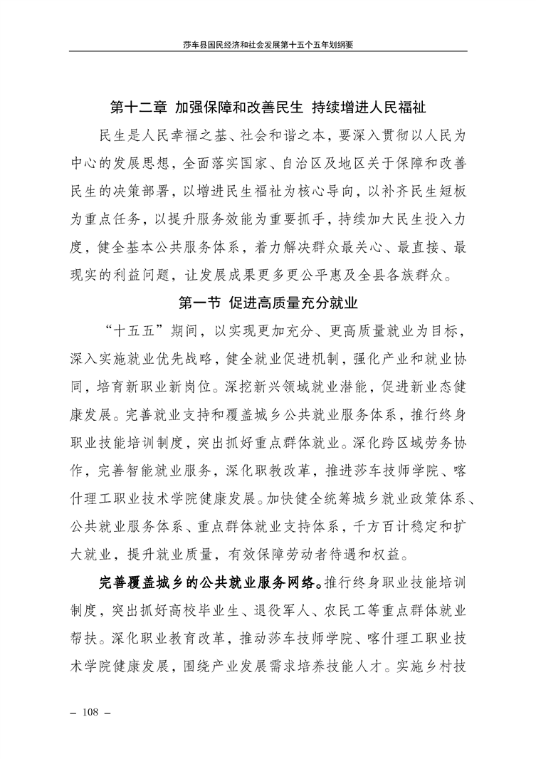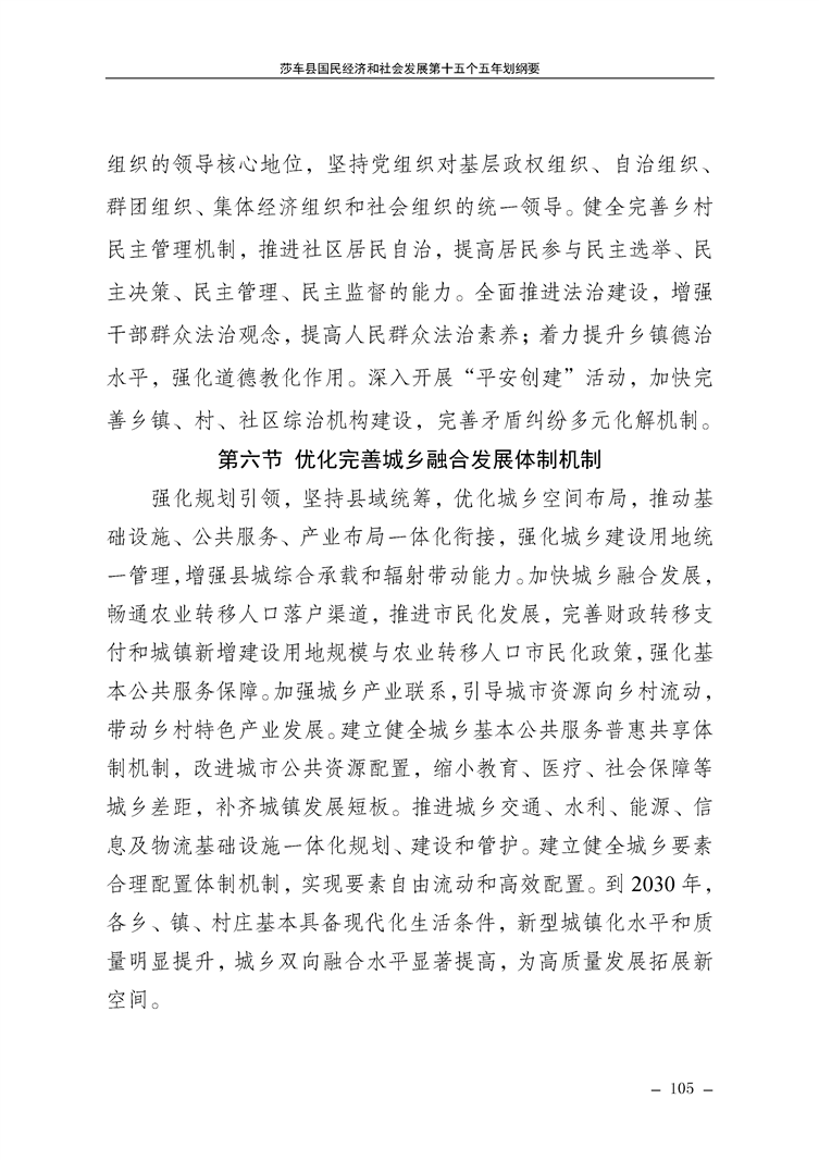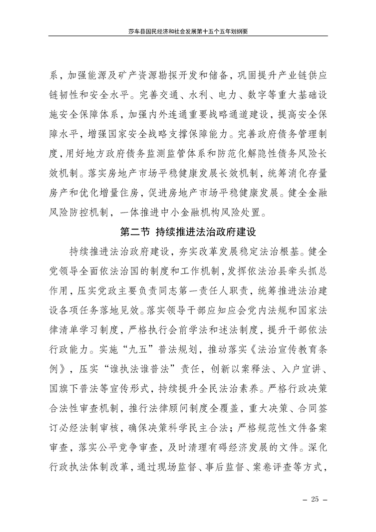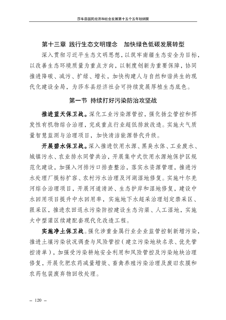 莎车县国民经济和社会发展第十五个五年规划纲要