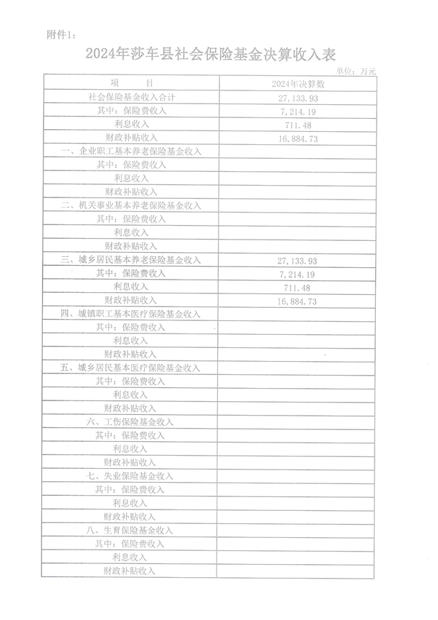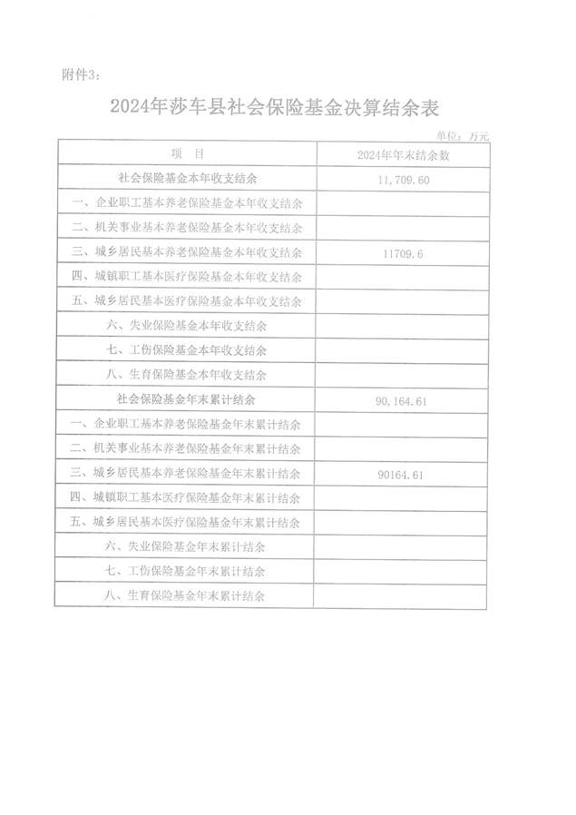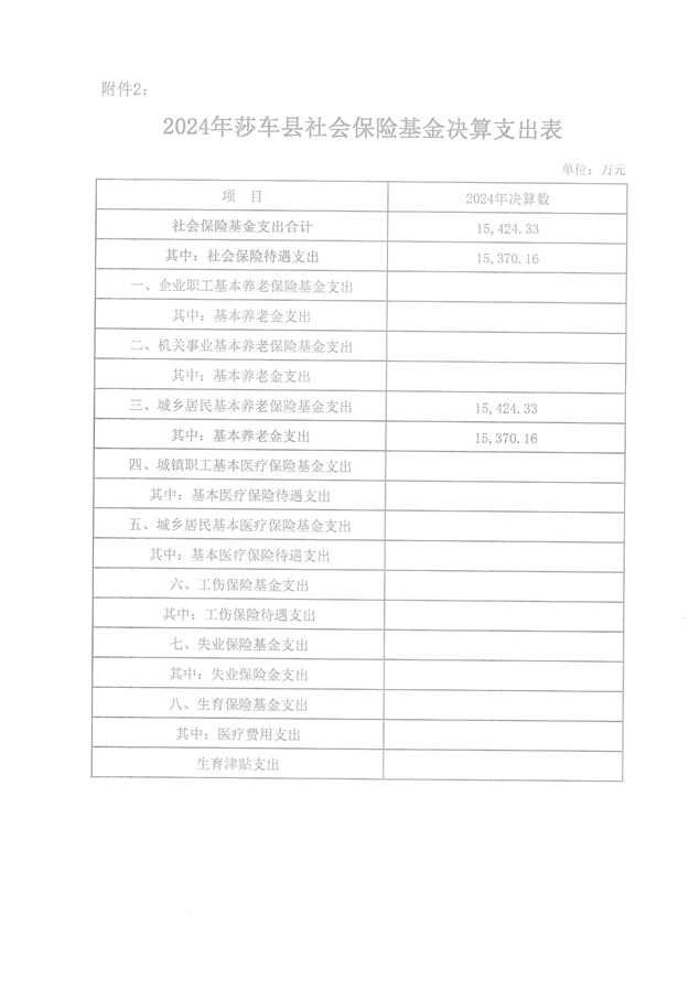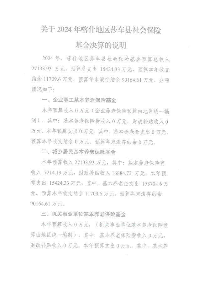关于2024年喀什地区莎车县社会保险基金决算的说明
