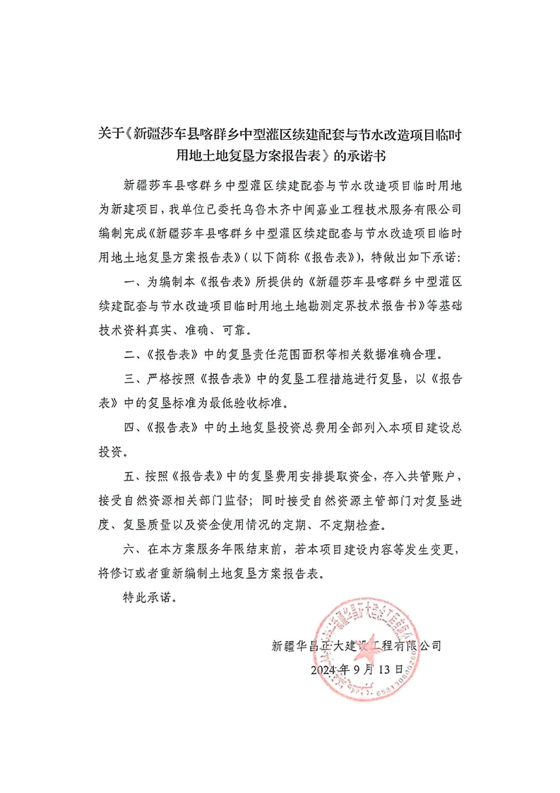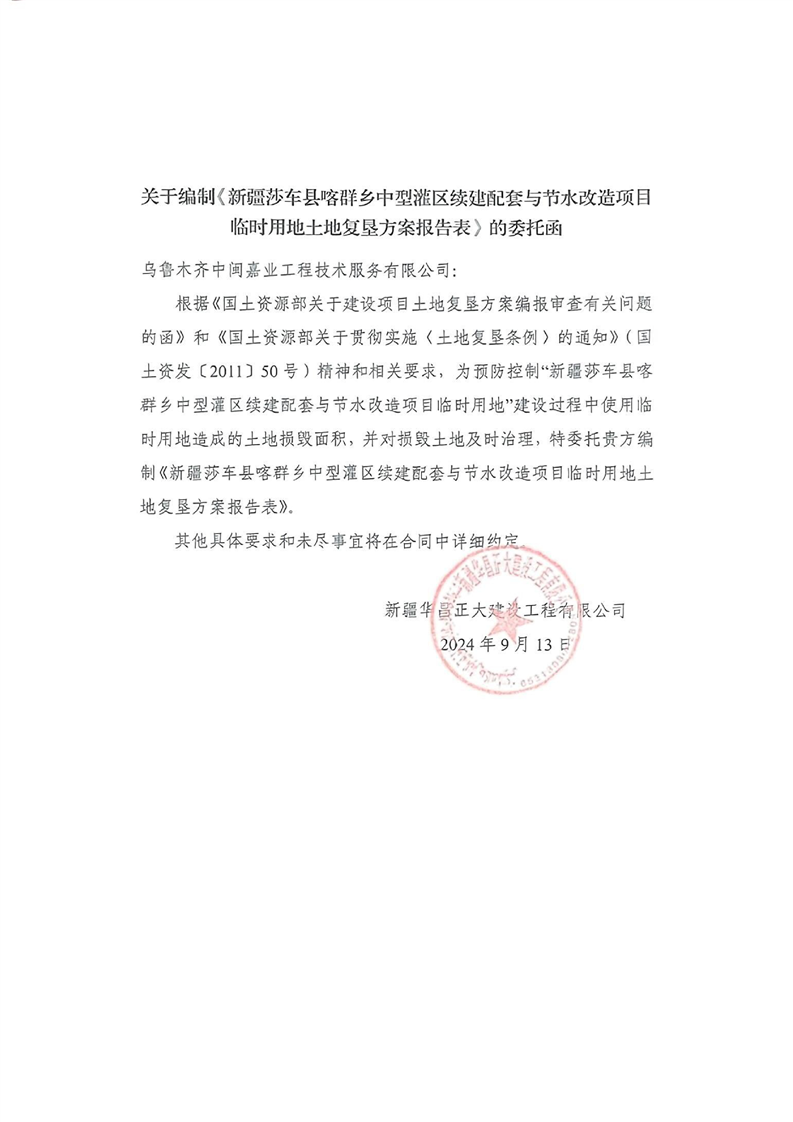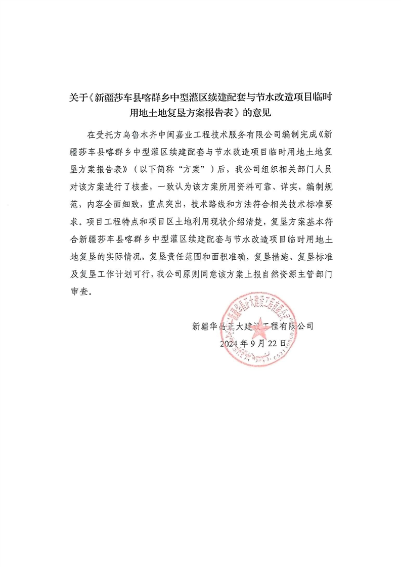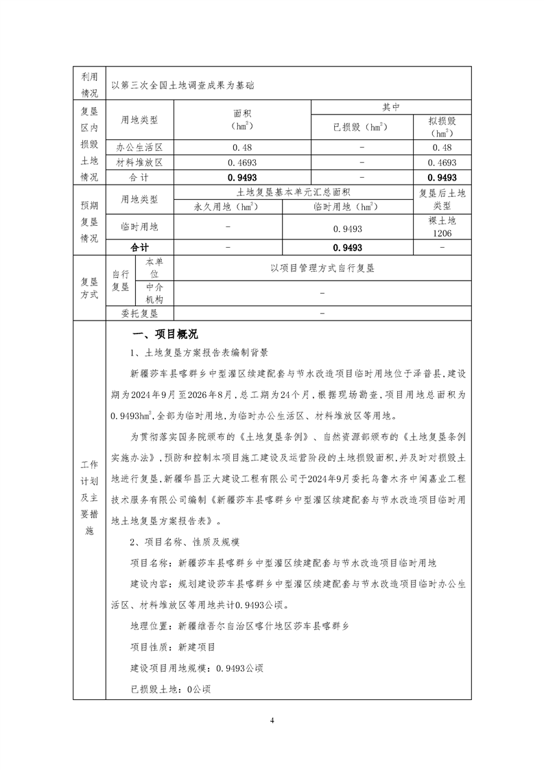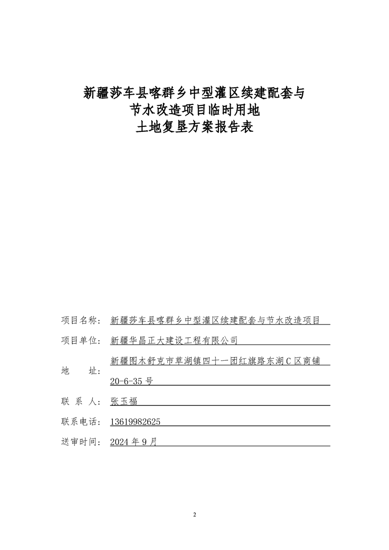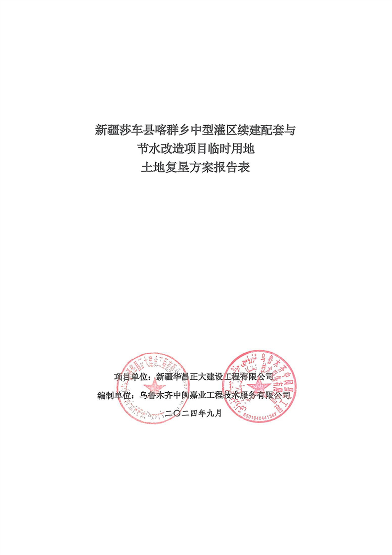 新疆莎车县喀群乡中型灌区续建配套与节水改造项目临时用地土地复垦方案报告表
