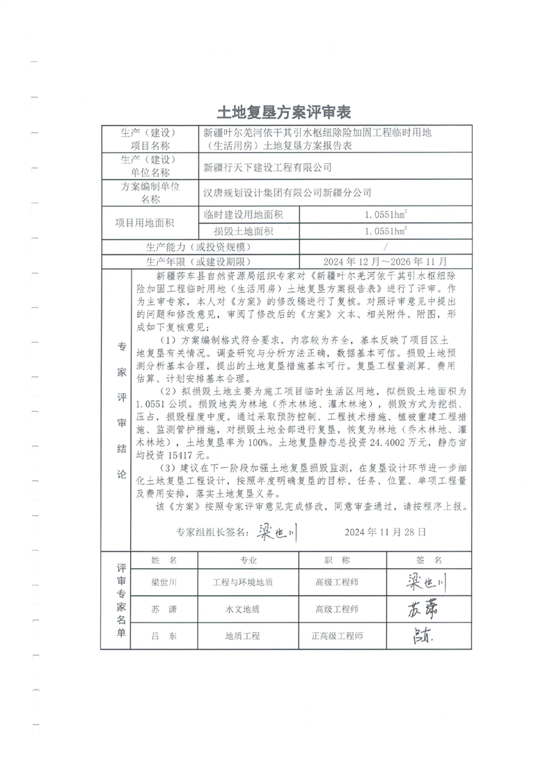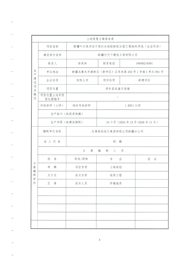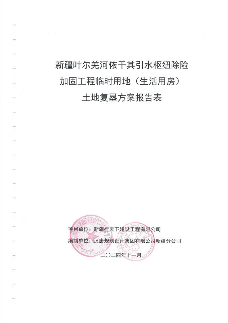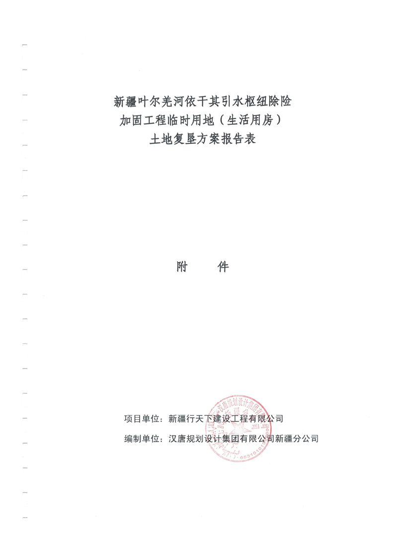土地复垦方案报告表--新疆叶尔羌河依干其引水枢纽除险加固工程临时用地(生活用房)