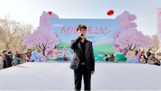 在“花开有声·音你而来”歌手交流活动现场,歌手们相继登台,献上风格各异、贴近生活的精选曲目。《请你快来我家乡》《画你》《苹果香》《风吹麦浪》《我是一条小河》等熟悉的旋律接连唱响,不少游客驻足花海,静静聆听,现场氛围轻松而温暖。