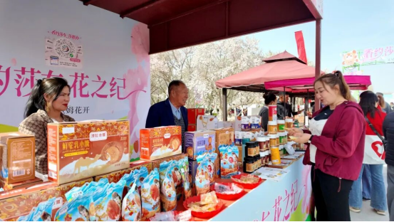 莎车县阿热勒乡恰吐克村村民阿丽米热·阿布杜热合曼说:“在巴旦木花海之下为大家表演节目,我特别开心,演出后逛了特色产品展销区,一边赏花一边品尝美食,感觉特别好。”
