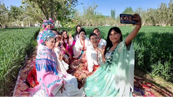 游客阿米娜木·阿布杜喀迪尔说:“听说这里的榅桲花开得特别漂亮,今天特意和朋友一起来打卡,在这里拍照很有氛围感,能欣赏到这么美的花海,真是一次超棒的春日体验。”游客麦丽开姆·苏力坦说:“我和朋友今天专门过来拍照,听说周末还有活动,我们决定到时候带着家人再过来看看,让他们也感受一下这里的氛围。”