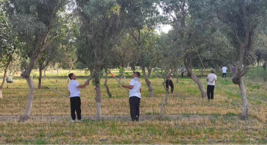 针对当地农民“靠天吃饭”的问题,还组建了40多人的专业农技服务队,推广先进种植管理技术,设立专项课题攻关巴旦木提质增效。