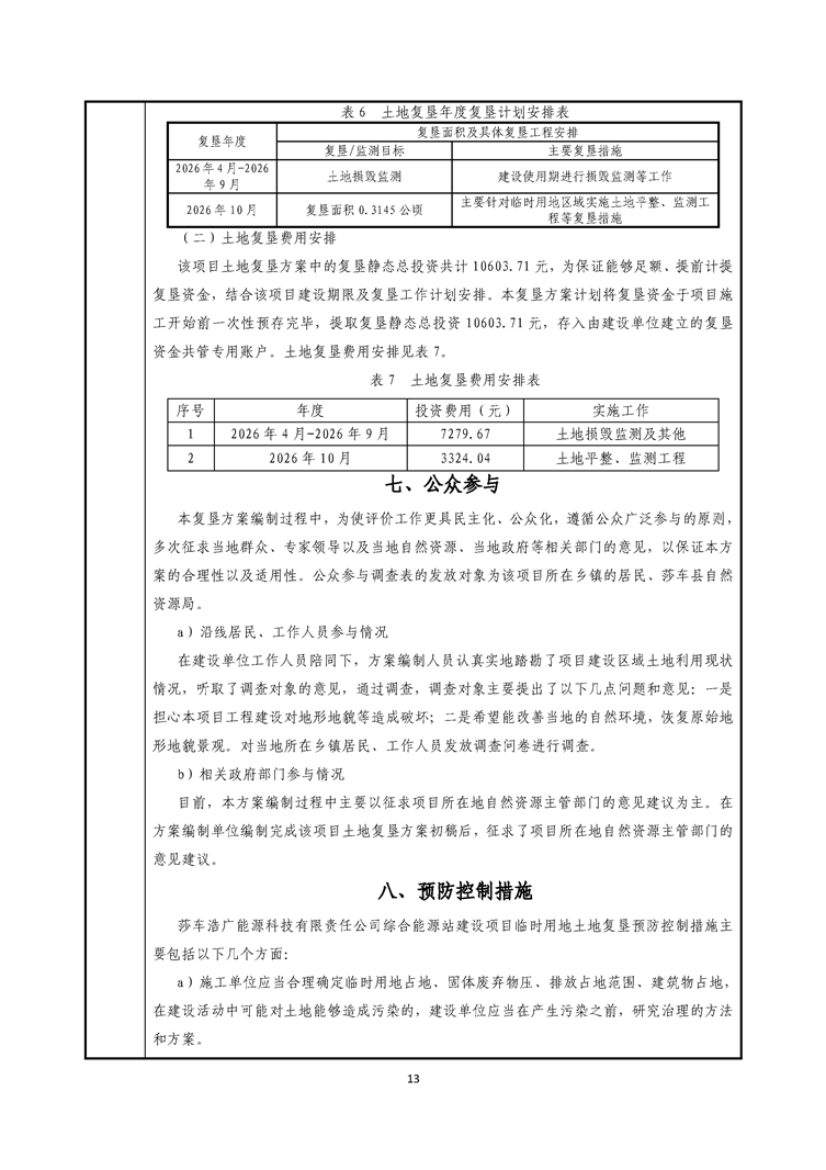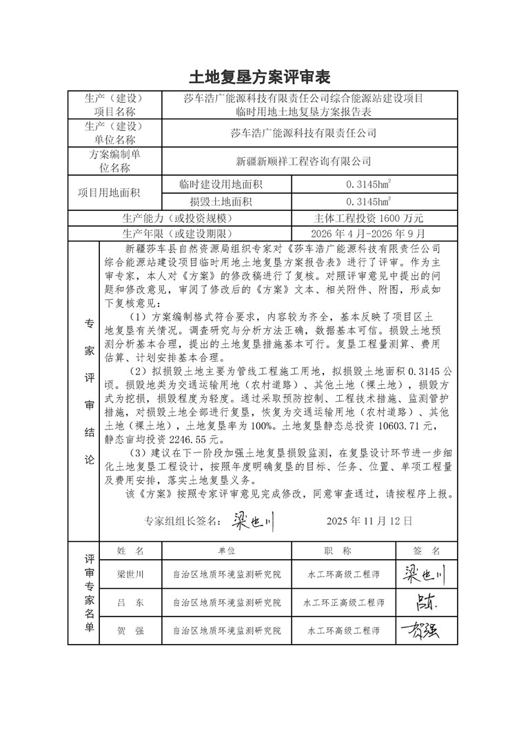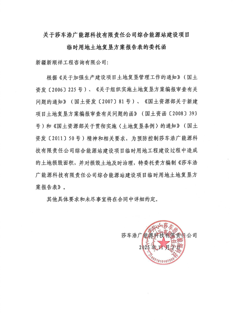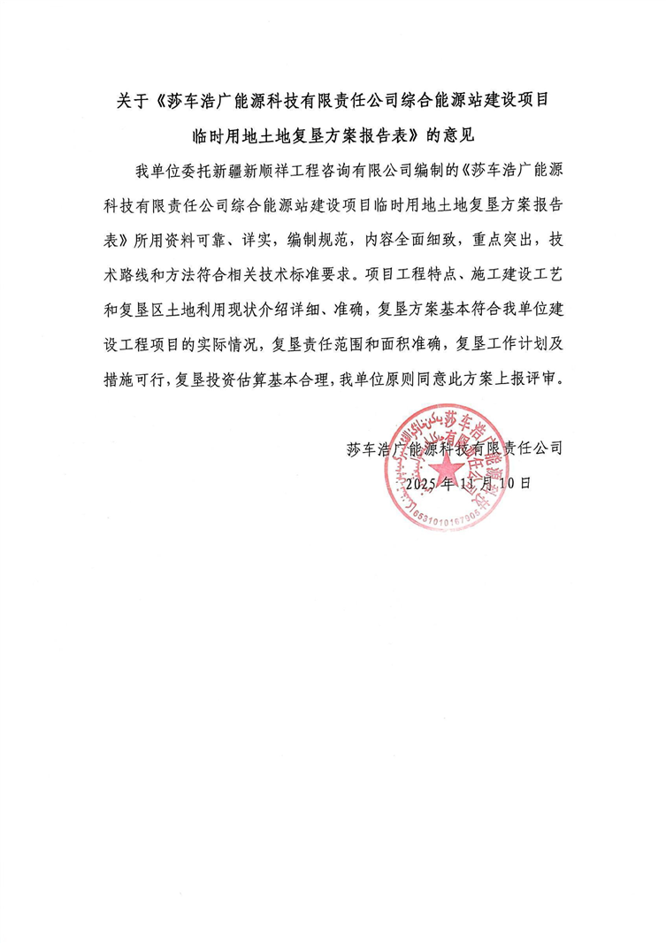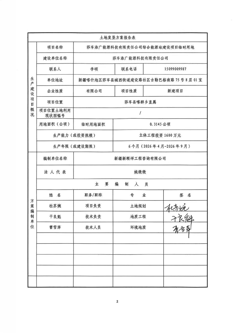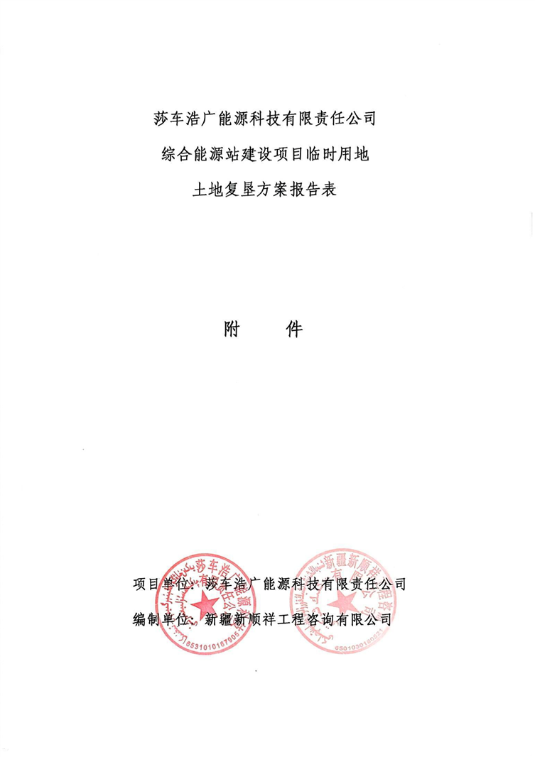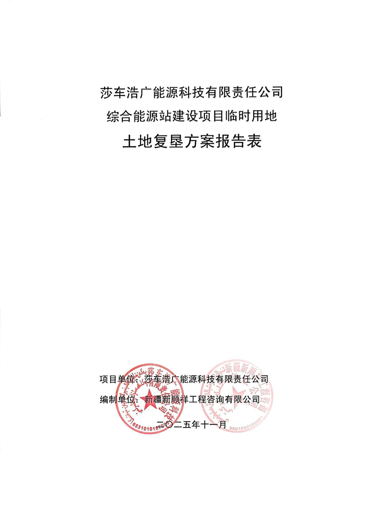 莎车浩广能源科技有限责任公司综合能源站建设项目临时用地土地复垦方案报告表