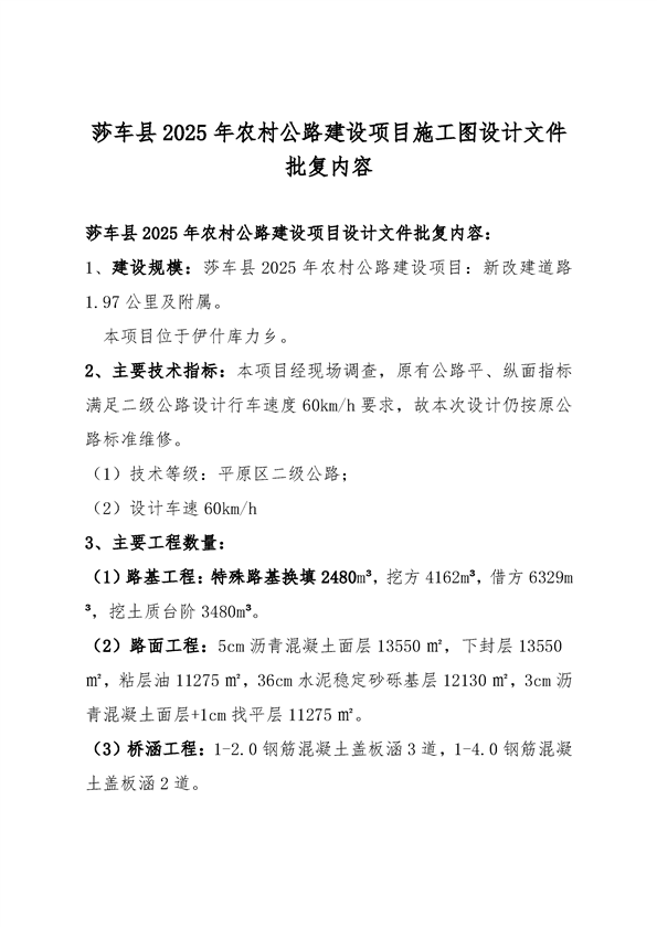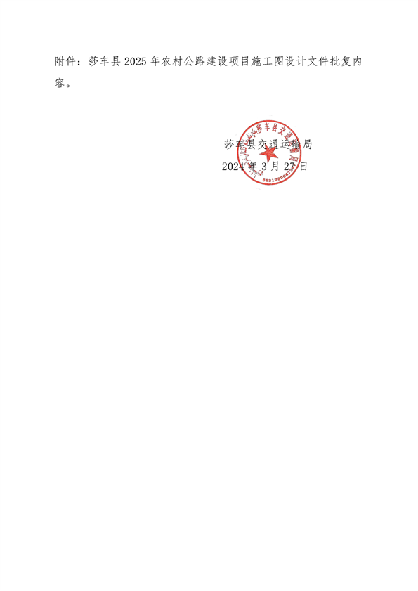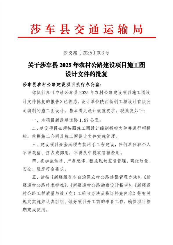 莎车县2025年农村公路建设项目施工图设计文件的批复