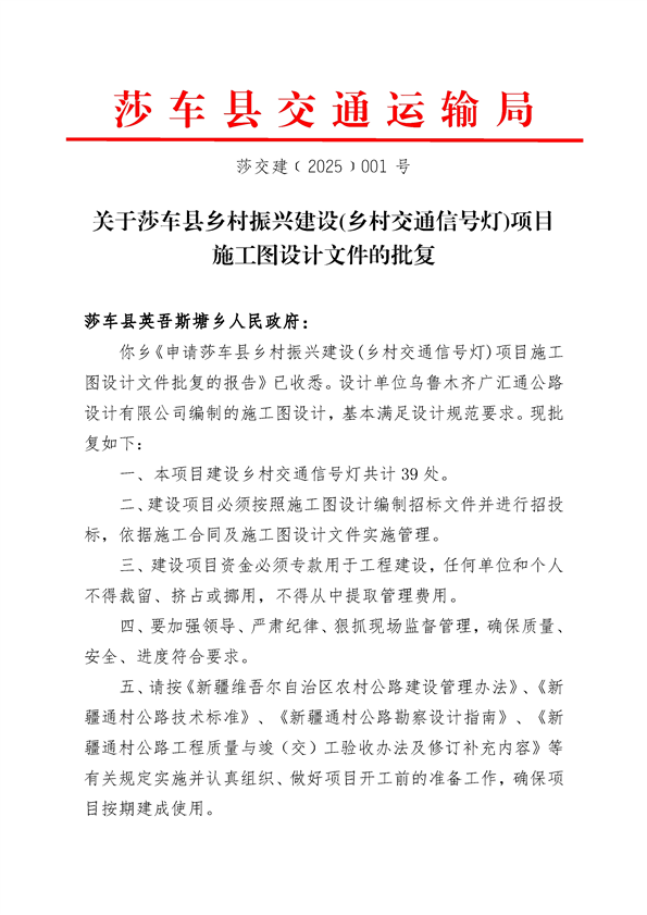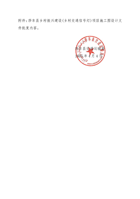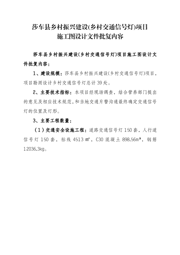 莎车县乡村振兴建设(乡村交通信号灯)项目设计文件批复